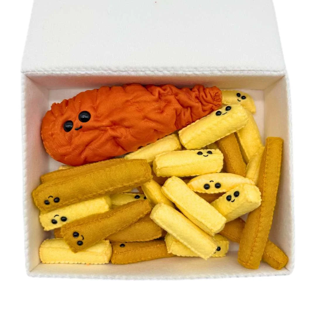 1 x small cod and 30 x chippies in varying colours and shapes!